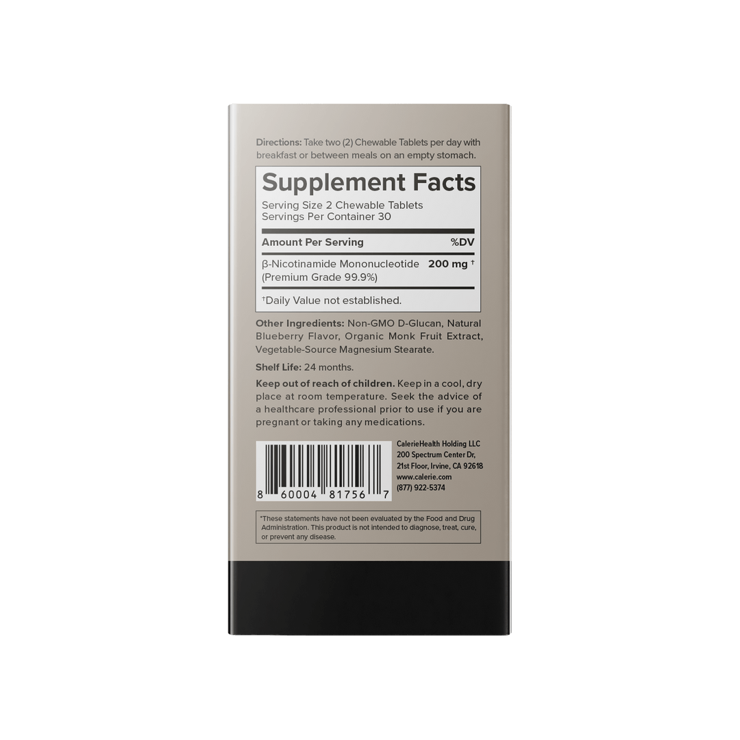 CalerieLife β-NMN 6,000 採用優質活性成分 β-菸鹼醯胺單核苷酸,此成分獲得科學支持,可作為抗衰老和神經保護的候選成分。 β-菸鹼醯胺單核苷酸是維生素 B3 的衍生物,可提高 NAD+ 的水平,NAD+ 是許多基本功能的關鍵化合物,可能會抑制與老化相關的因素。